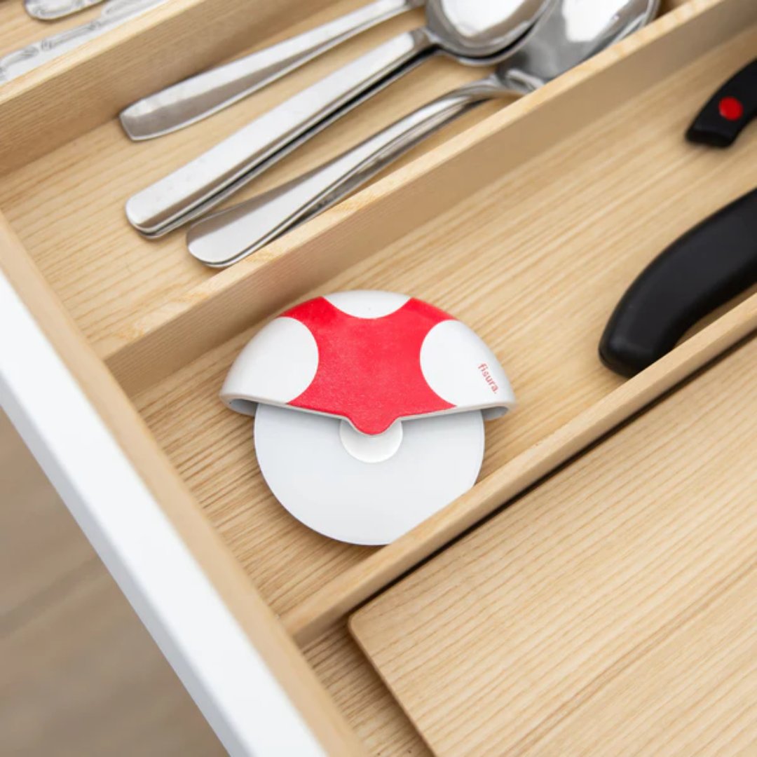 Divertido, original y muy práctico. El corta-pizza “Seta” de Fisura añade un toque de humor y naturaleza a tu cocina, sin renunciar a una cuchilla afilada y funcional.