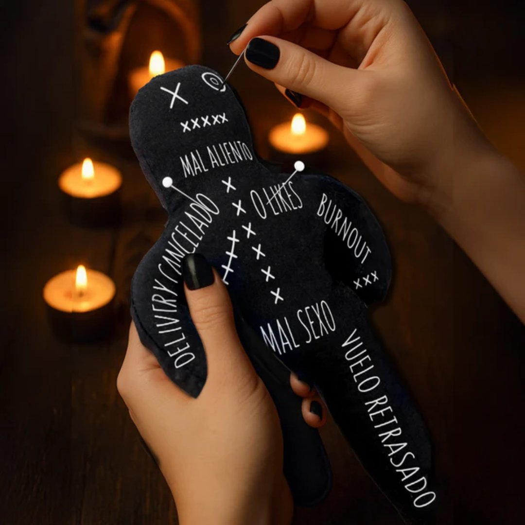 - 🧵 Contenido: muñeco vudú + alfileres.